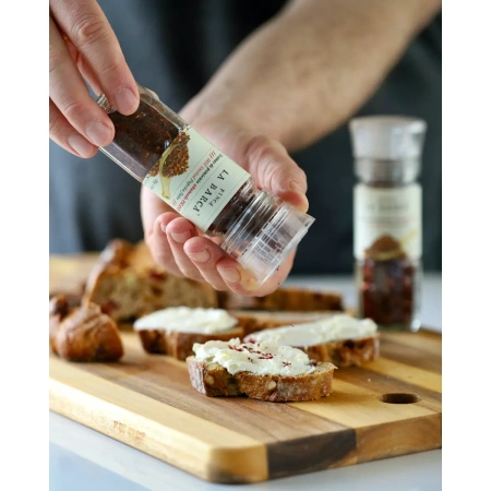 • Fulgi de Boia Spaniolă afumată picantă în râșniță (25 g) - produs Premium Finca la Barca - Pimentón de la Vera